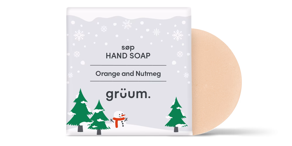 Our creamy and caring, zero plastic soap bar. Seasonally scented with fresh orange and rich nutmeg.