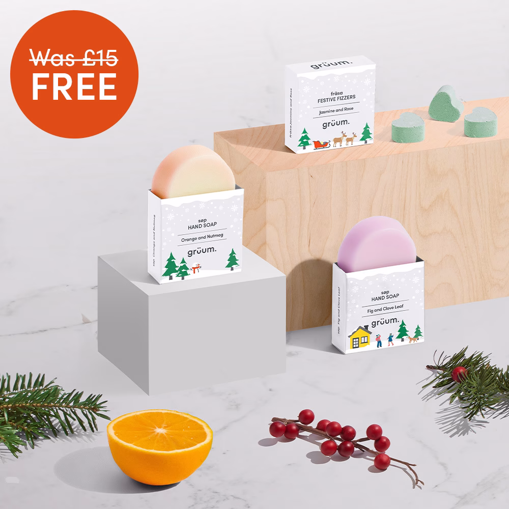 Claim our limited edition festive soap and soak set, worth £15, for FREE today – simply pay the £3.95 delivery fee.