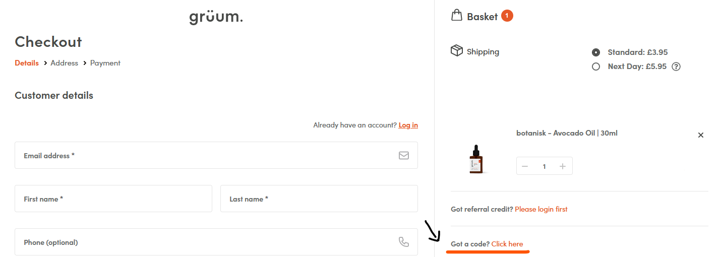Your unique voucher code can be entered into the ‘Got a code?’ section of the checkout/basket page, to redeem the credit against your order.