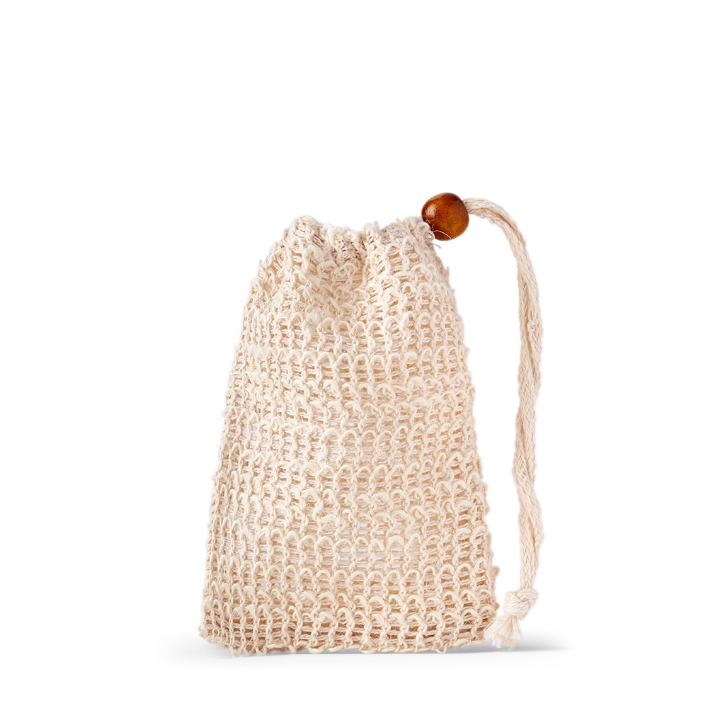 This bag can also be used as a sustainable alternative to a shower pouffe, helping you to get every last bit out of your soap. Thick but gentle natural fibres exfoliate and cleanse the skin. Simply pop the soap inside, wet and wash. No more annoying leftovers.
